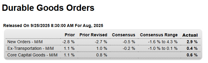 Los pedidos totales de bienes duraderos —que incluyen equipos de transporte, así como bienes como computadoras y productos metálicos— aumentaron un 2.9% intermensual en agosto, tras haber disminuido en los dos meses anteriores, según datos del Departamento de Comercio publicados el jueves.