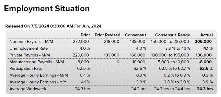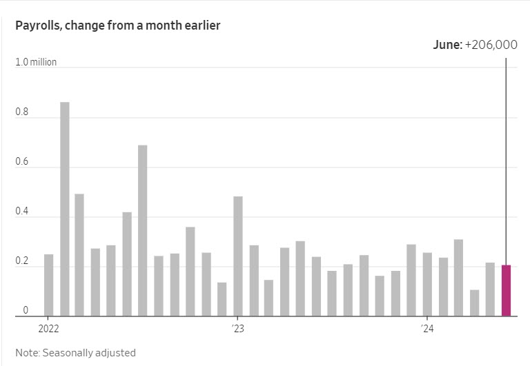 - Los empleadores añadieron 206,000 puestos de trabajo no agrícolas en junio. Los economistas esperaban un aumento de 189,500 puestos de trabajo.
