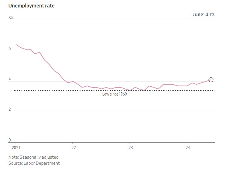 - La tasa de desempleo aumentó al 4.1% en junio desde el 4% en mayo.