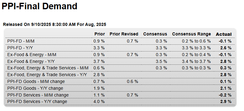 La inflación al por mayor se desaceleró inesperadamente en agosto, ya que el aumento de aranceles está tardando en implementarse. Si bien la volatilidad de los precios al productor puede generar sorpresa, los últimos datos no impiden que la Reserva Federal baje las tasas de interés la próxima semana.