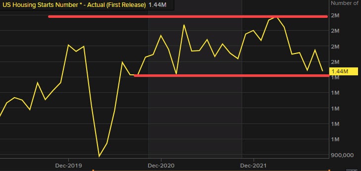 Viviendas iniciadas 1.439 millones frente a las estimaciones de 1.475 millones..