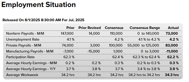 Las cifras de empleo de mayo y junio se revisaron drásticamente a la baja, mientras que la cifra de julio no cumplió con las expectativas.