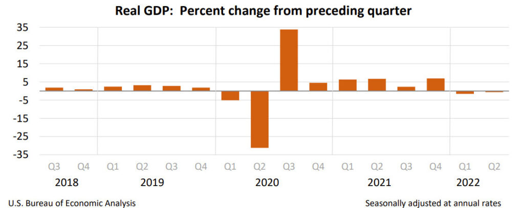 La economía de EEUU se contrajo en los primeros seis meses del año, confirman las cifras revisadas del gobierno, y pintaron una imagen de una economía presionada por todos los frentes. El producto interno bruto, el cuadro de mando oficial de la economía, cayó a un ritmo anual del 0.6% en el segundo trimestre, dijo el jueves la Oficina de Análisis Económico. Eso no ha cambiado desde la estimación anterior.