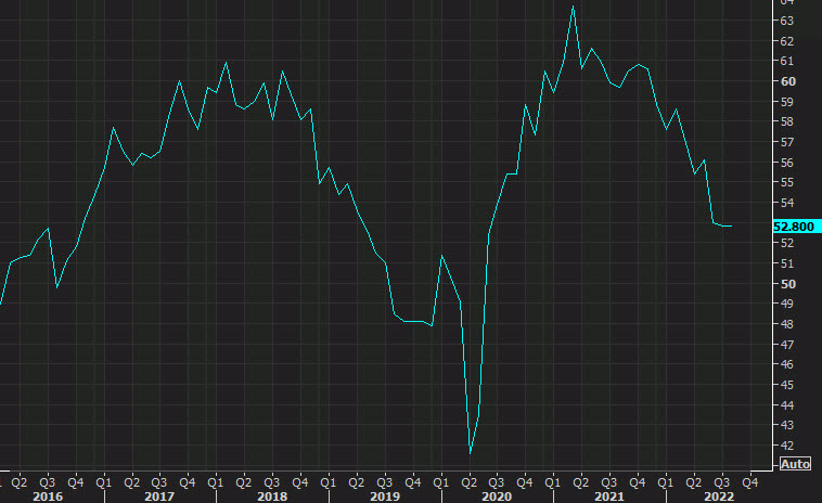 - El barómetro de producción cayó a 50.4% puntos desde 53.5%.