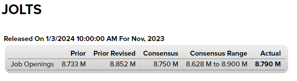 “Los datos JOLTS de hoy son otra señal de que la Reserva Federal está logrando un aterrizaje suave”, dijo Ron Temple, estratega jefe de mercado de Lazard. “El informe de hoy es una buena noticia para los trabajadores estadounidenses y la economía, pero también me sugiere que es poco probable que la Reserva Federal recorte las tasas tan agresivamente en 2024, como indican actualmente los mercados, dado el riesgo de reavivar las presiones inflacionarias”.
