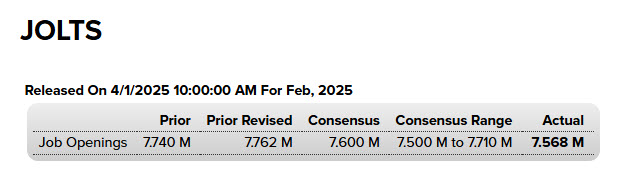 El número de vacantes —una medida de la demanda del mercado laboral— cayó a 7.57 millones en febrero, según el informe JOLTS de la Oficina de Estadísticas Laborales, publicado el martes. El total de febrero marca un retroceso respecto a enero, cuando el número de empleos disponibles aumentó a 7.76 millones a principios de año.