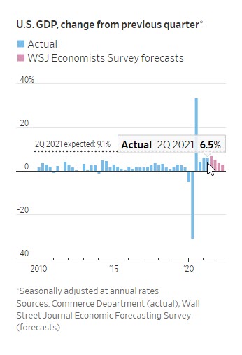 Avance del PIB del segundo trimestre de EEUU +6,5% frente al +8,5% esperado