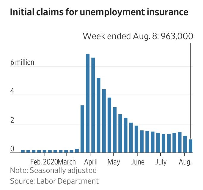 Las peticiones semanales de subsidio por desempleo en Estados Unidos se situaron por debajo del millón en la semana que finalizó el 8 de agosto por primera vez desde marzo, al alcanzar los 963.000 nuevos solicitantes, frente a los 1,191 millones de la semana anterior, según los datos publicados este jueves por el Departamento de Trabajo de Estados Unidos.