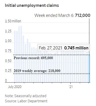 - Solicitudes iniciales de desempleo 712K versus 725K estimado
