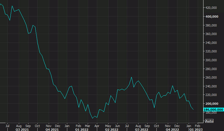 Solicitudes semanales iniciales de desempleo de EE. UU. 186K frente a +205K esperado.