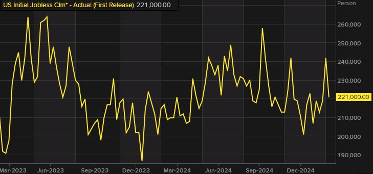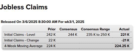 - La semana hasta el 1 de marzo registró 221,000 solicitudes iniciales de subsidio por desempleo, en comparación con las 242,000 de la semana anterior.