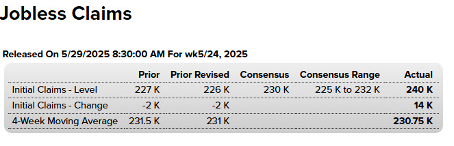 En la semana finalizada el 17 de mayo, se presentaron 227,000 solicitudes iniciales de subsidio por desempleo, en comparación con las 229,000 de la semana anterior. Los economistas encuestados por The Wall Street Journal esperaban 230,000 solicitudes iniciales de subsidio por desempleo.