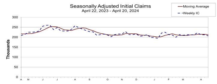Los economistas encuestados por The Wall Street Journal habían estimado que las nuevas solicitudes aumentarían a 215,000. La semana pasada, las solicitudes se mantuvieron estables en 212,000.