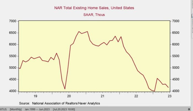 El número total de viviendas en venta en junio cayó un 13.6% respecto al pasado mes de junio hasta los 1.08 millones de unidades. El inventario de viviendas, particularmente de viviendas unifamiliares, se encuentra en el nivel más bajo registrado en el mes de junio con 960,000 unidades. Las ventas de casas usadas cayeron un 3.3% a una tasa anual de 4.16 millones en junio, dijo el jueves la Asociación Nacional de Agentes Inmobiliarios.