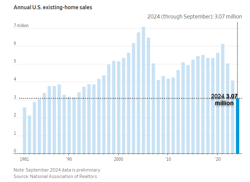 Las ventas de viviendas en Estados Unidos cayeron al nivel más bajo en 14 años, ya que los altos precios de las viviendas y la incertidumbre sobre las próximas elecciones presidenciales asustaron a los compradores de viviendas.