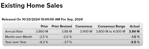 Las ventas de viviendas usadas cayeron un 1% a una tasa anual de 3.84 millones en septiembre, dijo el miércoles la Asociación Nacional de Agentes Inmobiliarios.