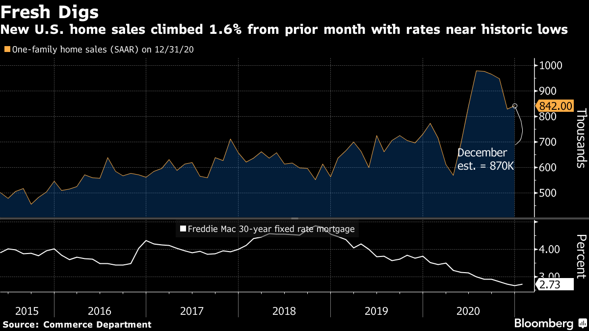 Las ventas de viviendas nuevas aumentaron un 1,6% en diciembre en comparación con noviembre a una tasa anual ajustada estacionalmente de 842.000.