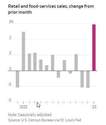 El consumidor volvió a relucir el mes pasado con un aumento del 3% en el gasto minorista que fue la mayor ganancia mensual en casi dos años, lo que se suma a la evidencia de que el crecimiento económico de EE. UU. se recuperó a principios de año.
