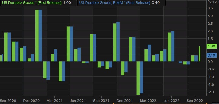 Los pedidos de bienes duraderos en octubre 1.0% frente a la estimación del 0.4%.
