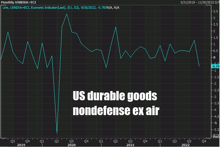 Los pedidos básicos, considerados un indicador de la inversión empresarial, cayeron un 0.7% en septiembre tras un aumento del 0.8% el mes anterior. Esta categoría excluye el sector volátil del transporte, así como el gasto público en equipo militar. Es la primera caída desde febrero y la mayor desde marzo de 2021.
