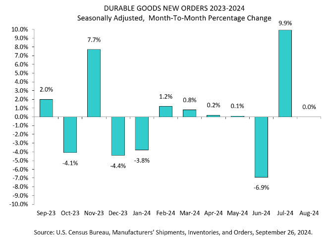 Los pedidos de bienes duraderos de Estados Unidos se mantuvieron estables en agosto, dijo el jueves el Departamento de Comercio. El resultado fue mucho mejor de lo previsto. Los economistas habían pronosticado una caída del 3% en los pedidos de bienes duraderos, productos fabricados para durar al menos tres años.