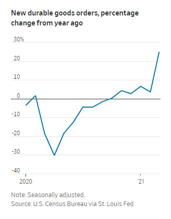 “En general, el sector de bienes duraderos está creciendo rápidamente, con ganancias significativas desde que disminuyó drásticamente la primavera pasada debido a la pandemia de Covid-19”, dijo Chad Moutray, economista jefe de la Asociación Nacional de Fabricantes. Moutray señaló que los pedidos generales de bienes han aumentado un 4,1% en los últimos 13 meses, o un 10,8%, sin incluir el equipo de transporte.
