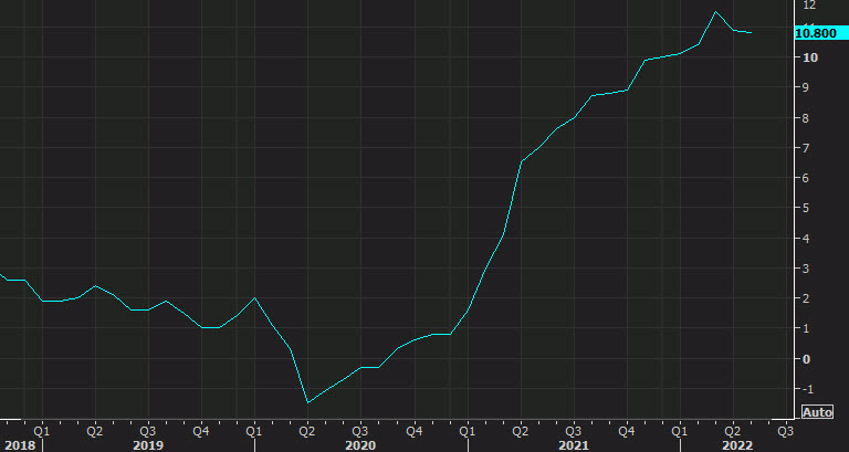 No son solo los consumidores los que están sintiendo los efectos del aumento de la inflación: las empresas se están viendo afectadas y los precios mayoristas aumentaron más de lo esperado en junio. El índice de precios al productor, o PPI, subió un 1.1% el mes pasado, por encima de las previsiones de un aumento del 0.8%. En términos interanuales, el índice saltó un 11.3% en junio, el mayor aumento desde el aumento, valga la redundancia, récord del 11.6% de marzo. y por encima de las previsiones de 10.7%.