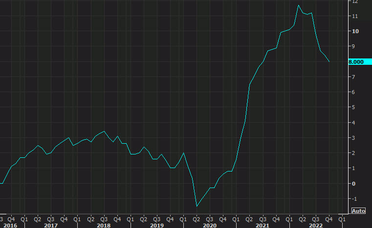 El índice de precios al productor, que generalmente refleja las condiciones de suministro en la economía, subió un 8% sobre una base de 12 meses en octubre, dijo el martes el Departamento de Trabajo. Eso marcó una ligera disminución con respecto al aumento revisado del 8.4% de septiembre y fue considerablemente inferior al aumento del 11.7% en marzo, el más alto desde que comenzaron los registros en 2010.