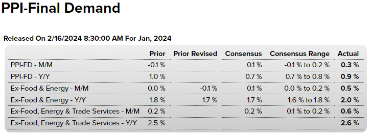 El informe del PPI se publica tras un decepcionante aumento del índice de precios al consumo en enero. El aumento de los precios a principios de 2024 sugiere que la inflación no se deslizará rápida ni fácilmente hacia el objetivo de la Reserva Federal.