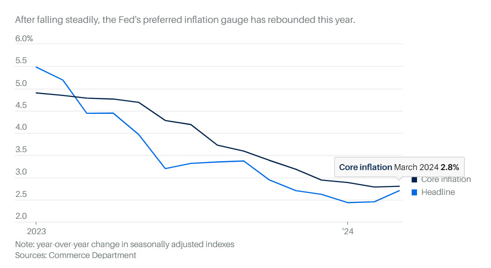 Los precios en Estados Unidos volvieron a subir en marzo según el índice PCE preferido de la Reserva Federal, lo que indica que el progreso en la reducción de la inflación se ha estancado.