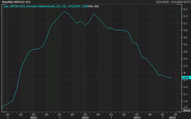 La tasa de inflación básica en los 12 meses finalizados en marzo se mantuvo sin cambios en el 2.8%.