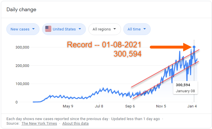 El Santa Rally y los 1ros 5 días de Enero han salido positivos, los índices continúan en TA incluso con esta semana que han tenido una pausa, la mayoría han mostrado una vela roja, imagino que es la reacción a la cifra del desempleo que mostró 965.000 peticiones para la semana que terminó en el 9 Enero, aunque exista más contracción durante las siguientes semanas, en mi opinión NO creo que la economía se vaya a poner mal, al contrario, el Presidente Electo Biden anunció su plan de estímulo y los Trillones de $ que viene seguramente tendremos TA para un rato más.