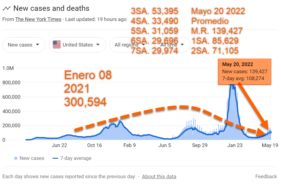 El bajo más bajo de la sesión del Viernes 20 de Mayo-2022 en el SPY (SP500) fué de 380.54 una semana antes en el día Jueves el precio ya había visitado los 385 pts, faltando exactamente 1.16 pts para haber alcanzado el 20% de caída desde su punto más alto, para mí este dato solo representa un reglamento técnico, porque ya hemos declarado hace 1 o 2 semanas que varios índices han sobrepasado sus respectivos niveles del 20% que viene a ser la línea que oficializa técnicamente hablando un mercado de Osos.